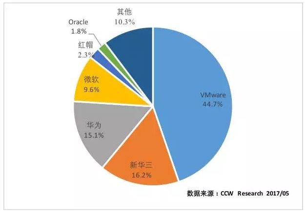 報(bào)告顯示,從市場(chǎng)份額角度看,2016年,VMware仍然占據(jù)中國(guó)服務(wù)器虛擬化市場(chǎng)第一的位置,但市場(chǎng)份額從前一年已的47.8%降到了44.7%。新華三則從前一年的13.8%上升到16.2%,華為的份額同樣有所增長(zhǎng),而Citrix則跌出了單獨(dú)列出的前六名廠商之外,產(chǎn)品重心更加傾向于桌面及移動(dòng)IT產(chǎn)品。