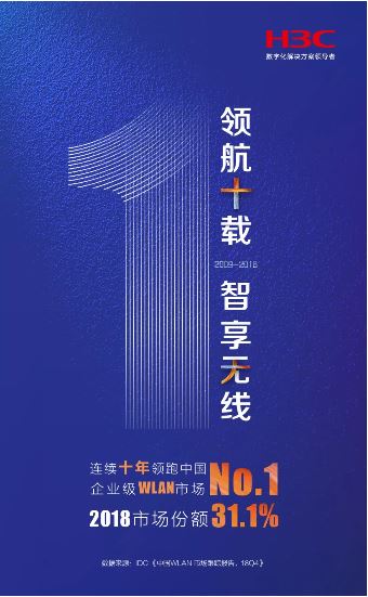 近日, 全球權(quán)威ICT市場研究機(jī)構(gòu)IDC發(fā)布的《中國WLAN市場跟蹤報(bào)告,18Q4》顯示,紫光旗下新華三集團(tuán)以31.1%的市場份額位居2018年中國企業(yè)級WLAN市場第一。從2009年到2018年,新華三已連續(xù)十年蟬聯(lián)中國企業(yè)級WLAN市場占有率第一,成為當(dāng)之無愧的行業(yè)領(lǐng)袖,彰顯了新華三在WLAN領(lǐng)域領(lǐng)先的技術(shù)實(shí)力與始終如一的可靠品質(zhì)。