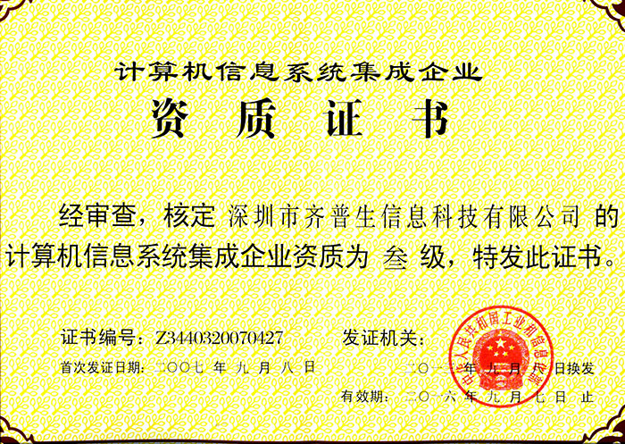 計(jì)算機(jī)信息系統(tǒng)集成企業(yè)資質(zhì)證書(shū)(三級(jí))
